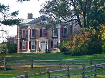 Keywords: house home pennsylvania sky trees bushes plants grass lawn fence stone fall autumn nature outside country countryside architecture