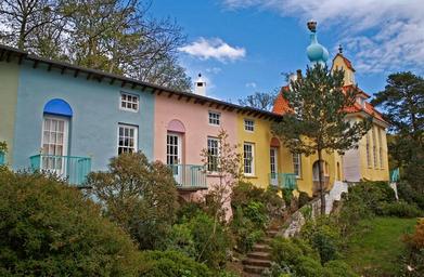 Keywords: houses colored color architecture colorful estate blue yellow building home real property sky housing colour vivid urban residential trees clouds blue sky exterior facade street town paint residence