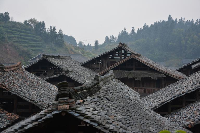 Keywords: houses roofs chinese traditional housing designs architecture clay tiles brown architectural patterns china hillside hilly flora plants trees landscapes homes buildings exterior construction residential property residence