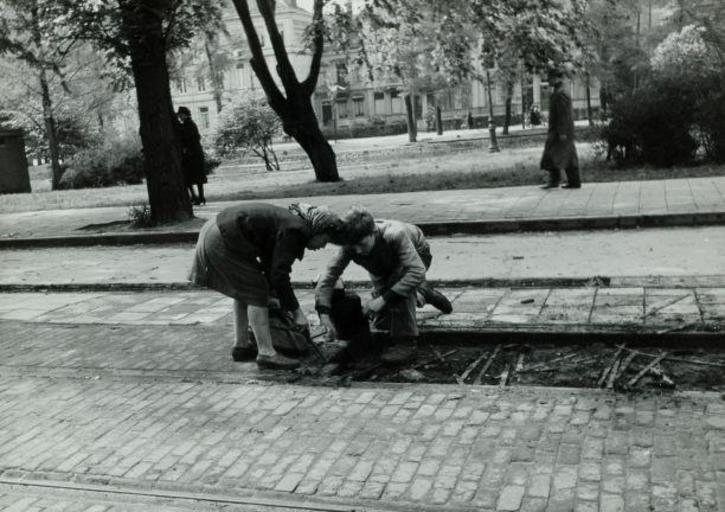 Keywords: haarlem nederland bevrijding netherlands liberation tweede wereldoorlog tweedewereldoorlog woii wwii second wold war secondwoldwar world war two worldwartwo world war ii worldwarii second world war secondworldwar outdoor blackandwhite black and white Nationaal Archief / Spaarnestad Photo, SFA006001354 Tweede Wereldoorlog. Schaarste op bevrijdingsdag: kinderen roven houtblokjes tussen de tramrails vandaan voor de houtkachel/ het fornuis. 5 mei 1945. Wold War II. Liberation of Holland. Children nicking wood from tram rails to use as fuel in the stove. The Netherlands, location unknown. May 5, 1945. Collectie Spaarnestad Voor meer informatie en voor meer foto’s uit de collectie van Spaarnestad Photo, bezoek onze Beeldbank: www.spaarnestadphoto.nl/ U kunt ons helpen onze kennis van de fotocollecties te verrijken door tags en commentaren toe te voegen. Herkent u mensen of locaties of heeft u een bijzonder verhaal te vertellen bij één van de foto’s, laat dan een reactie achter (als u ingelogd bent bij Flickr) of stuur een mailtje naar: hhamelink@spaarnestadphoto.nl You can help us gain more knowledge on the content of our collection by simply adding a comment with information. If you do not wish to log in, you can write an e-mail to: hhamelink@spaarnestadphoto.nl Nationaal Archief / Spaarnestad Photo, SFA006001354 Tweede Wereldoorlog. Schaarste op bevrijdingsdag: kinderen roven houtblokjes tussen de tramrails vandaan voor de houtkachel/ het fornuis. 5 mei 1945. Wold War II. Liberation of Holland. Children nicking wood from tram rails to use as fuel in the stove. The Netherlands, location unknown. May 5, 1945. Collectie Spaarnestad Voor meer informatie en voor meer foto’s uit de collectie van Spaarnestad Photo, bezoek onze Beeldbank: www.spaarnestadphoto.nl/ U kunt ons helpen onze kennis van de fotocollecties te verrijken door tags en commentaren toe te voegen. Herkent u mensen of locaties of heeft u een bijzonder verhaal te vertellen bij één van de foto’s, laat dan een reactie achter (als u ingelogd bent bij Flickr) of stuur een mailtje naar: hhamelink@spaarnestadphoto.nl You can help us gain more knowledge on the content of our collection by simply adding a comment with information. If you do not wish to log in, you can write an e-mail to: hhamelink@spaarnestadphoto.nl |
