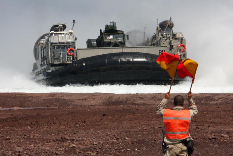 Keywords: Army Marines Navy hovercraft Landing Craft Air Cushioned vehicles transporting