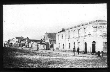 Keywords: rahs footpaths historic buildings historicbuildings hotels taverns men roads streets blackandwhite photo border monochrome outdoor architecture building serene black and white A view of the unsealed Howick Street in 1871, with two men engaged in conversation on footpath outside The Duke's Hotel. From negative in Mitchell Library Frank Walker Collection ON 150, Item 1493. A view of the unsealed Howick Street in 1871, with two men engaged in conversation on footpath outside The Duke's Hotel. From negative in Mitchell Library Frank Walker Collection ON 150, Item 1493. |