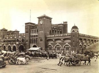 | Keywords: Howrah railway station, Calcutta in 1945.jpg Sacred cattle and coolies push and pull great carts to the loading platform of the Howrah railroad station in background on of the city's two stations Howrah is on the west bank of the river and Sealdah the other station is in another section of Calcutta on the east side The South Asia Section of the Van Pelt Library University of Pennsylvania recently acquired from a bookdealer a photograph album consisting of 60 photographs of Calcutta taken most likely between 1945-1946 The photographer Mr Clyde Waddell also provided the interesting glosses accompanying each photograph Several attested copies of this work has emerged including one with a 'title page' held by the Southeastern Louisiana University in Hammond Louisiana Mr Waddell was a military photographer Many of his captions sound like annotations that would be found in a typical military magazine The album begins with several general long shots of Calcutta and ends with a picture of dhobi-s washermen washing clothes The text accompanying the last photograph also sounds as if the author intended to finish with that picture of one of the great mysteries of India The annotations have been included because of their intrinsic interest not only to the photographs but to a 'typical' American impression of India at this time 1945 http //www library upenn edu/collections/sasia/calcutta1947/ Clyde Waddell other versions PD-USGov Van Pelt Library University of Pennsylvania - Clyde Waddell Calcutta 1940's photos Uploaded with UploadWizard Howrah station |