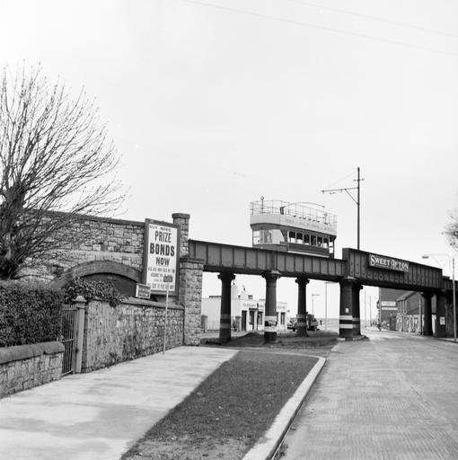 Keywords: tram elevated bridge elevatedbridge bridge advertising prize bonds prizebonds sweet afton sweetafton howth, co. dublin howthcodublin howth dublin 1959 1950s james p. o'dea jamespodea foot-paths footpaths harbour-town harbourtown british-architecture britisharchitecture electric-trams electrictrams findlater's findlaters clock gem the gem thegem national library of ireland nationallibraryofireland o'dea photographic collection odeaphotographiccollection blackandwhite monochrome outdoor road vehicle train locomotive building building structure infrastructure architecture black and white A tram crossing over the elevated road bridge at Howth, Co. Dublin. Thanks to A. P. Luckwill we have an exact location for this photo as that bridge is long gone, and he also said: "Parts of the original Howth Head tramway trackbed are still accessible on foot, from the top down, the path ends right at the point where this bridge once stood!" Date: March 1959 NLI Ref.: ODEA10/2 A tram crossing over the elevated road bridge at Howth, Co. Dublin. Thanks to A. P. Luckwill we have an exact location for this photo as that bridge is long gone, and he also said: "Parts of the original Howth Head tramway trackbed are still accessible on foot, from the top down, the path ends right at the point where this bridge once stood!" Date: March 1959 NLI Ref.: ODEA10/2 |