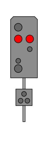 Keywords: Hp0 Licht.svg Deutsches Lichtsignal Hp0 Halt Selbstgezeichnet nach der Beschreibung der Eisenbahn-Signalordnung Ein rotes Licht oder zwei rote Lichter waagerecht nebeneinander given in the Eisenbahn-Signalordnung 2006-02-04 own assumed Qualle Diagrams of railway signals in Germany |