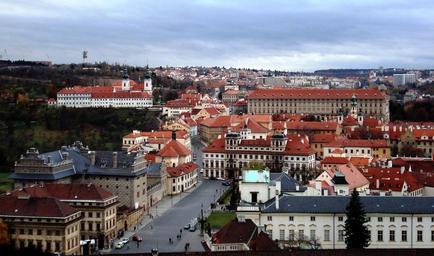 Keywords: Hradschany.JPG global view of Hradčany from the South Tower of Saint-Vitus cathedral Vue globale du Hradschin depuis la Tour sud de la cathédrale Saint-Guy du Chateau de Prague<br>En partant du premier plan a gauche Palais Schwarzenberg arch Pavlicek - 1810 Palais Schwarzenberg-Lobkowicz arch A Vlach - 1563 au fond de la place du Hradschin Palais Thun-Hohenstein ancien Palais des ducs de Toscane arch J -Baptiste Mathey - 1691 dans son prolongement longue facade grise interrompue par le clocher de Notre-Dame de Lorette Palais Černín ministere des Affaires étrangeres arch F Caratti - 1680 second plan a gauche monastere de Strahov Panorama Hradčan od věže kátedraly sv Vita Own 2006 Rémi Diligent Views of Hradčany from St Vitus Cathedral |