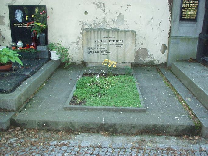 Keywords: Hrob Vojtěcha Tittelbacha.jpg en grave of Vojtěch Tittelbach - Šárka cemetery in Prague cs hrob Vojtěcha Tittelbacha na hřbitově Šárka v Praze own ABC2 2009-05-16 Hřbitov Šárka