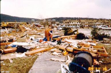 Keywords: Hsv damage 02.jpg en The November 15 1989 F4 tornado to strike Huntsville Alabama reduced several buildings of Waterford Square Apartments to rubble Some buildings of the complex were spared background Photographed by NWS Birmingham during their storm survey 1989-11-16 http //www srh noaa gov/images/bmx/significant_events/1989/11_15/graphics/ C S;O D National Weather Service Birmingham Alabama office other versions PD-USGov 1989 Huntsville Tornado |
