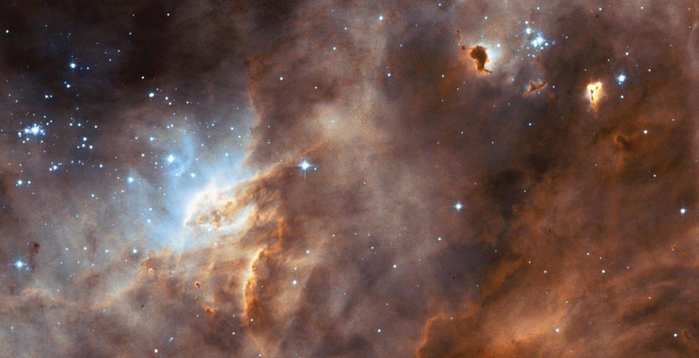 | Keywords: lha 120-n 11b lha120n11b n11b texture abstract The NASA/ESA Hubble Space Telescope captures the iridescent tapestry of star birth in a neighbouring galaxy in this panoramic view of glowing gas, dark dust clouds, and young, hot stars. The star-forming region, catalogued as N11B lies in the Large Magellanic Cloud (LMC), located only 160,000 light-years from Earth. With its high resolution, the Hubble Space Telescope is able to view details of star formation in the LMC as easily as ground-based telescopes are able to observe stellar formation within our own Milky Way galaxy. Our neighbourhood galaxy the Large Magellanic Cloud (LMC) lies in the Constellation of Dorado and is sprinkled with a number of regions harbouring recent and ongoing star formation. One of these star-forming region, N11B, is shown in this Hubble image. It is a subregion within a larger area of star formation called N11. N11 is the second largest star-forming region in LMC. It is only surpassed in the size and activity by "the king of stellar nurseries", 30 Doradus, located at the opposite side of LMC. The NASA/ESA Hubble Space Telescope captures the iridescent tapestry of star birth in a neighbouring galaxy in this panoramic view of glowing gas, dark dust clouds, and young, hot stars. The star-forming region, catalogued as N11B lies in the Large Magellanic Cloud (LMC), located only 160,000 light-years from Earth. With its high resolution, the Hubble Space Telescope is able to view details of star formation in the LMC as easily as ground-based telescopes are able to observe stellar formation within our own Milky Way galaxy. Our neighbourhood galaxy the Large Magellanic Cloud (LMC) lies in the Constellation of Dorado and is sprinkled with a number of regions harbouring recent and ongoing star formation. One of these star-forming region, N11B, is shown in this Hubble image. It is a subregion within a larger area of star formation called N11. N11 is the second largest star-forming region in LMC. It is only surpassed in the size and activity by "the king of stellar nurseries", 30 Doradus, located at the opposite side of LMC. |