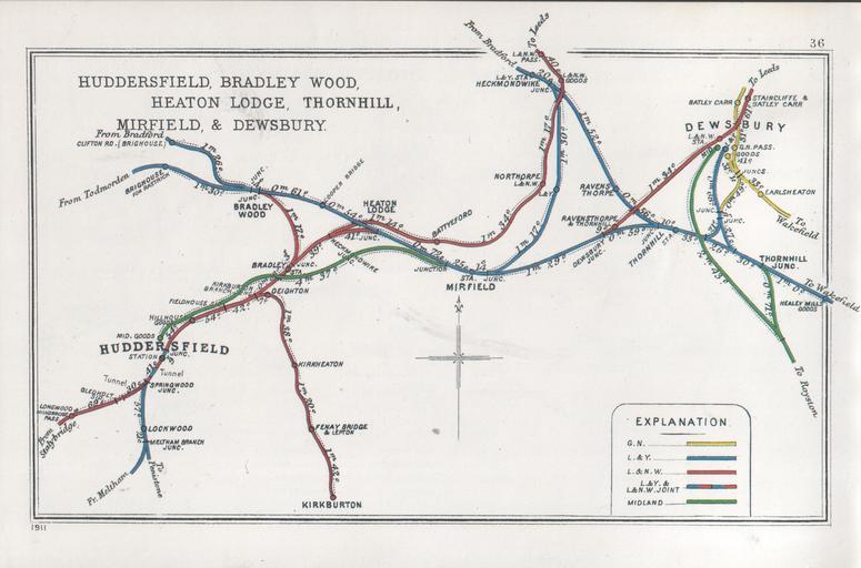 | Keywords: Huddersfield, Bradley Wood, Heaton Lodge, Thornhill, Mirfield & Dewsbury RJD 36.jpg Pre Grouping railway junction around Huddersfield Bradley Wood Heaton Lodge Thornhill Mirfield Dewsbury Railway Junction Diagram and 1911 1914 Railway Clearing House Author died more than 70 years ago - public domain PD-old DEFAULTSORT 036 Railways Junctions Diagram 1914 001-040 Yorkshire RJD 1914 Great Northern Railway Great Britain RJD Lancashire and Yorkshire Railway RJD London and North Western Railway RJD Midland Railway RJD |