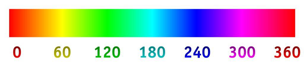 Keywords: HueScale.svg Hue scale 0 ”360° The hue unit is Degree Own 2007-01-28 w ru User Kalan HSV Hue