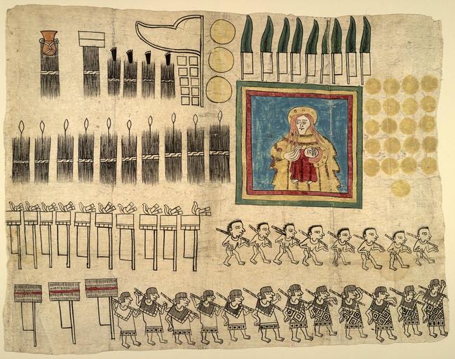 | Keywords: Huexotzinco Codex, 1531 WDL2657.jpg Artwork ru Кодекс Уэшоцинко 1531 г fr Codex Huexotzincah 1531 en Huexotzinco Codex 1531 zh 休兆西高法典,1531 年 pt Codex Huexotzinco 1531 ar مجموعة مخطوطات هويشوتزينكو، 1531 ru <em>Кодекс Уэшоцинко</em> написан на восьми листах на бумаге <em>аматль </em> кото ая изготавливалась в езоаме ике до асп ост анения ев опейской бумаги Данный документ является частью свидетельских показаний в судебном азби ательстве п отив колониального п авительства ексики кото ое п оводилось десять лет спустя после испанского завоевания в 1521 году Уэшоцинко го од асположенный к юго-востоку от ехико в штате Пуэбла В 1521 году индейцы на одности нахуа п оживавшие в го оде были союзниками испанского завоевателя Э нандо Ко теса; совместными усилиями они выступили п отив своих в агов с целью победить октесуму вождя импе ии ацтеков После завовевания те ито ии егион п оживания на одностей Уэшоцинко вошел в состав поместий Ко теса В 1529-1530 годах в отсутствие Ко теса п едставители испанского колониального уп авления вмешивались в повседневные дела общины и вынудили индейцев нахуа платить непоме ные налоги в виде това ов и услуг Когда Ко тес ве нулся в ексику он совместно с индейцами нахуа начал судебное азби ательство п отив испанских должностных лиц Истцы выиг али это судебное азби ательство в ексике и позднее в Испании где дело слушалось повто но Согласно имеющимся данным в исто ическом документе обна уженном в коллекциях Библиотеки Конг есса в 1538 году ко оль Испании Ка л согласился с ве диктом вынесенным п отив испанских должностных лиц и издал указ о возв ащении двух т етей всех податей полученных от жителей го ода Уэшоцинко <br>Кодекс; Показания; Индейцы ексики; Ко енные на одности; езоаме ика; Индейцы ауа; алогообложение; Свидетельства; Судебные азби ательства fr Le Codex Huexotzinco est un document comportant huit feuillets d'amatl une forme de papier fabriquée en Amérique Centrale avant l'arrivée des européens Il fait partie d'un témoignage dans un procès contre des représentants du gouvernement colonial de Mexico en 1521 dix ans après la conquête espagnole Huexotzinco est une ville située au sud-est de Mexico dans l'état de Puebla En 1521 les indians Nahuas de la villes se sont alliés au conquistador espagnol Hernando Cortés dans la lutte contre Moctezuma qui dirigeait l'Empire aztèque Après la conquête les habitants de Huexotzinco sont devenus sujets de Cortés En 1529-1530 en l'absence de Cortés les administrateurs de la colonie espagnole sont intervenus dans les activité de la communauté et ont contraint les Nahuas à payer d'énormes taxes sous forme de biens et de corvées Au retour de Cortés les Nahuatis ont fait appel à lui pour les soutenir dans un procès contre les abus des administrateurs espagnols Les plaignants ont remporté leur procès à Mexico et également lorsque celui-ci a été rejugé à Madrid Les conclusions du procès un document découvert dans les collections de la Bibliothèque du Congrès montrent qu'en 1538 le roi Charles d'Espagne a confirmé le jugement contre les administrateurs espagnols et ordonné que les deux tiers des tributs prélevés aux citoyens de Huexotzinco leur soient rendus <br>Codex; Dépositions; Indiens du Mexique; Peuples autochtones; Méso-Amérique; Indiens Nahuas; Imposition; Témoignage; Procès en The <em>Huexotzinco Codex</em> is an eight-sheet document on <em>amatl </em> a pre-European paper made in Mesoamerica It is part of the testimony in a legal case against representatives of the colonial government in Mexico ten years after the Spanish conquest in 1521 Huexotzinco is a town southeast of Mexico City in the state of Puebla In 1521 the Nahua Indian people of the town were the allies of the Spanish conqueror Hernando Cortés and together they confronted their enemies to overcome Moctezuma leader of the Aztec Empire After the conquest the Huexotzinco peoples became part of Cortés's estates During 1529-30 when Cortés was out of the country Spanish colonial administrators intervened in the daily activities of the community and forced the Nahuas to pay excessive taxes in the form of goods and services When Cortés returned the Nahuas joined him in a legal case against the abuses of the Spanish administrators The plaintiffs were successful in their suit in Mexico and later when it was retried in Spain The record shows in a document uncovered in the collections of the Library of Congress that in 1538 King Charles of Spain agreed with the judgment against the Spanish administrators and ruled that two-thirds of all tributes taken from the people of Huexotzinco be returned <br>