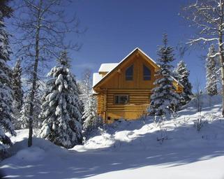 Keywords: huge log building wooden architecture beautiful winter season nature snow cold dry home wintry freezing