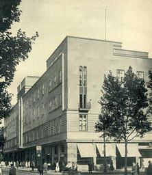 Keywords: Hugo Schmölz (geb. 21. Januar 1879 in Sonthofen; gest. 27. April 1938 in Köln), Düsseldorf, Breidenbacher Hof, der Blick in die Walther-Rathenau-Straße (ehemalige Bazarstraße, heutige Theodor-Kröner-Straße) um 1928.jpg en t Emil Fahrenkamp/Theodor Huneke/Hugo Schmölz Palast Hotel Breidenbacher Hof nach dem Umbau von Prof E Fahrenkamp Düsseldorf Die Neugestaltung des Palast-Hotels Breidenbacher Hof zu Düsseldorf Verlag Josef Kolvenbach 1928 2 Aufl Düsseldorf Hugo Schmölz geb 21 Januar 1879 in Sonthofen; gest 27 April 1938 in Köln before 1928 public domain PD-old Breidenbacher Hof Düsseldorf |