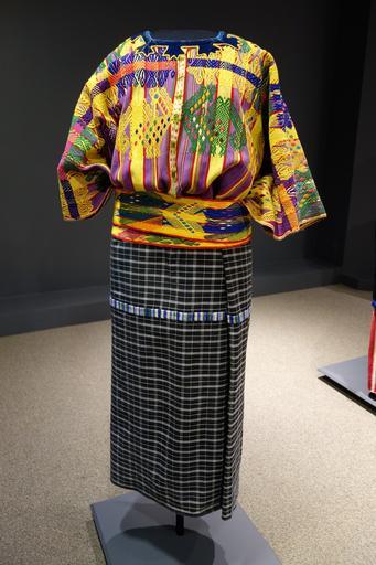 | Keywords: Huipil (c. 1980-1985), skirt and belt (mid to late 20th c.), San Juan Sacatepequez, Kaqchikel Maya, cotton - Textile Museum of Canada - DSC01057.JPG en Exhibit in the Textile Museum of Canada 55 Centre Avenue Toronto Ontario Canada Photography was permitted in the museum without restriction 2013-07-04 14 34 22 own Daderot cc-zero Maya textiles in the Textile Museum of Canada Uploaded with UploadWizard | ||||