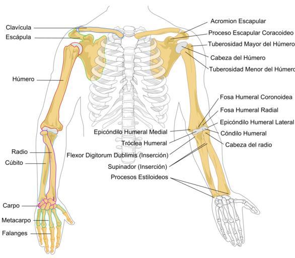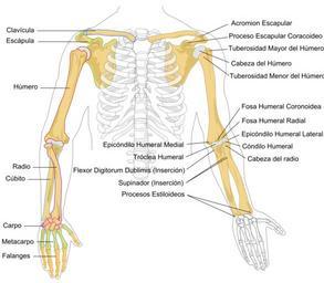 Keywords: Human arm bones diagram-es.svg The humerus is the upper arm bone It joins with the scapula above at the shoulder joint or glenohumeral joint and with the ulna and radius below at the elbow joint Notice When the arm is spun so that the thumb point to the outside of the body meaning the palm of the hand looks forward then it is said the hand is supinated But when the thumb remains in the inside and the palm looks backwards then it is said that the hand is pronated In this diagram one hands is pronated and the other supinated in order to show how the ulna and the radius cross while doing this movement Human_arm_bones_diagram svg 2009-06-29 00 05 UTC Human_arm_bones_diagram svg LadyofHats Mariana Ruiz Villarreal derivative work Addicted04 <span class signature-talk >talk</span> LadyofHats Other versions/Human arm bones diagram Translation Addicted04 Human_arm_bones_diagram svg Diagrams in Spanish Bones of the human arm Clavicula Scapula Humerus Radius bone