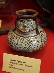 Keywords: Human figure jar, Shipibo peoples, Ecuador, late 20th century, clay - Fernbank Museum of Natural History - DSC09939.JPG en Exhibit in the Fernbank Museum of Natural History Atlanta Georgia USA Photography was permitted in the museum without restriction 2012-03-17 00 32 39 own Daderot cc-zero Ethnographic items in the Fernbank Museum of Natural History Uploaded with UploadWizard Shipibo-Conibo |