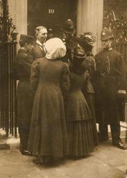 Keywords: suffrage the women's library thewomenslibrary women history politics hires monochrome 7JCC/O/02/008 Photograph, printed, paper, monochrome, suffragettes Daisy Solomon and Elspeth McClellan with a post boy, police and an official outside no.10 Downing Street, attempting to get themselves delivered as letters; printed inscription on reverse 'Copyright: World's Graphic Press Limited, 36-38 Whitefriars Street, Fleet Street, London. Please Acknowledge' 7JCC/O/02/008 Photograph, printed, paper, monochrome, suffragettes Daisy Solomon and Elspeth McClellan with a post boy, police and an official outside no.10 Downing Street, attempting to get themselves delivered as letters; printed inscription on reverse 'Copyright: World's Graphic Press Limited, 36-38 Whitefriars Street, Fleet Street, London. Please Acknowledge' |