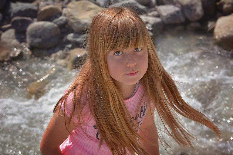 Keywords: human person child girl long hair bach water face view nature out