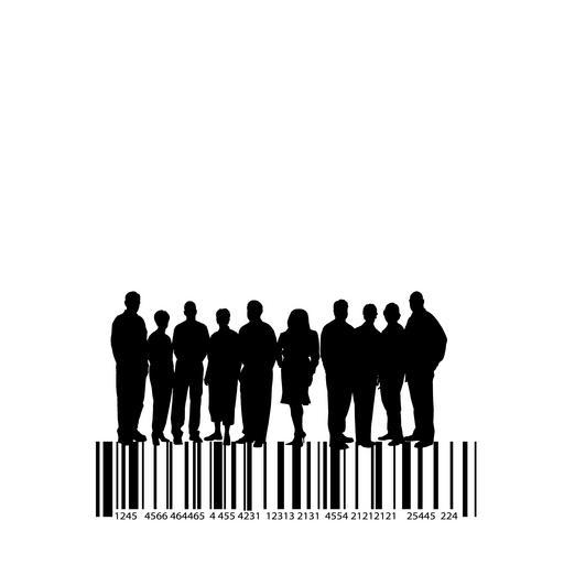 Keywords: human silhouettes group many barcode bar code strip code code encryption crowd acquisition storage citizens monitoring control observation state