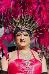 Keywords: human woman street parade costume festival queen spring jewelry pink violet