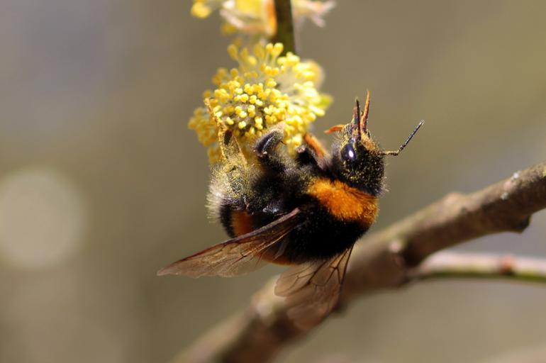Keywords: hummel bombus bee insect animal frühlingsanfang nature pussy willow collect nectar branch
