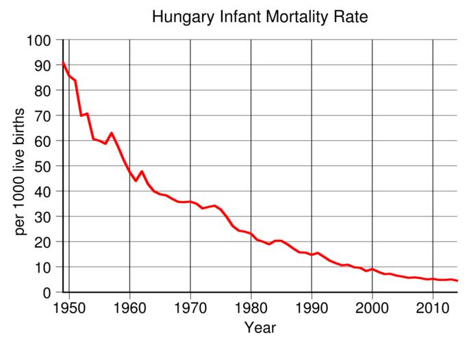 Keywords: Hungary Infant Mortality Rate.svg translate yes en Hungary infant mortality rate from 1949 to 2014 Data from https //www ksh hu/docs/eng/xstadat/xstadat_long/h_wdsd001a html Hungarian Central Statistical Office 2015-03-14 own Delphi234 other versions Generated with Wikimedia SVG Chart SVG Chart/box cc-zero Uploaded with UploadWizard Infant mortality rates Demographics of Hungary |