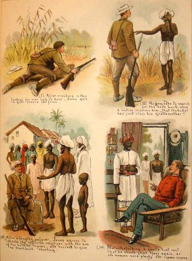 | Keywords: Hunting 201.jpg en Lloyd's Sketches of Indian Life London 1890 chromolithographs enhanced with gum arabic Arrival in Bombay native women-- visions of Lalla Rookh waking in the morning street scene Central India revenge for noise donkey-riders soldiers croquet dust-sprinkling at the club The Alligator's Dinner Hour Camping Himalayas families hunting porters various sketches 1 various sketches 2 various sketches 3 various sketches 4 Source ebay Aug 2005 1890 http //www columbia edu/itc/mealac/pritchett/00routesdata/1800_1899/dailylife_drawings/lloyd1890/lloyd1890 html Lloyd's Sketches PD-Art Uploaded with UploadWizard W Lloyd 'Lloyd's Sketches of Indian Life' London Chapman Hall 1890 |