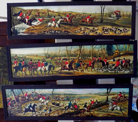 Keywords: fox hunting foxhunting panels shop paintings old virginia oldvirginia red coats redcoats black hats blackhats horses dogs hounds hunters hunting