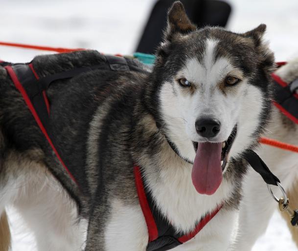 Keywords: husky dog face eyes fur animal huskies blue eye snow race sled dog landscape nature sled dog racing kandersteg mountains switzerland musher competition world championship slide winter winter sports human hobby