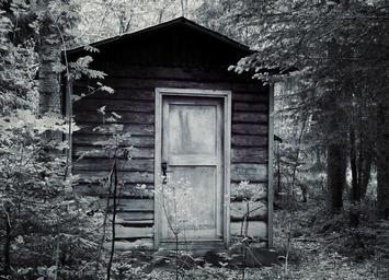 Keywords: hut forest nature log cabin rest house black and white accommodation stay