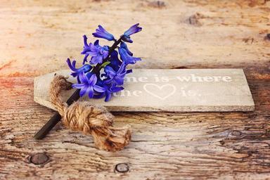 Keywords: hyacinth flower flowers fragrant flower blue spring flower fragrant plant close shield wooden sign wood deco