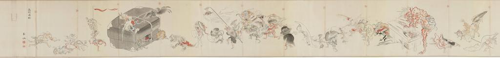 Keywords: Hyakki Yako no Zu by Tosa Mitsuoki- left half.jpg LargeImage en Yokai/ Night March of a Hundred Demons scroll by Tosa Mitsuoki Tosa Mitsuoki Japanese 佐 光起; 1617 November 14 1691 was a Japanese painter Tosa was born in Sakai Osaka the son of Tosa Mitsunori 1583 1638 also a painter His original name was Tosa Fujimitsu also called Tsuneaki Tosa lived in the early Edo period 1603 1867 He revived the Tosa school of painting recapturing the title of official court artist He died in Kyoto Japan Tosa Mitsuki s 1600 PD-Art Ghosts of Japan Hyakki Yako Emaki |