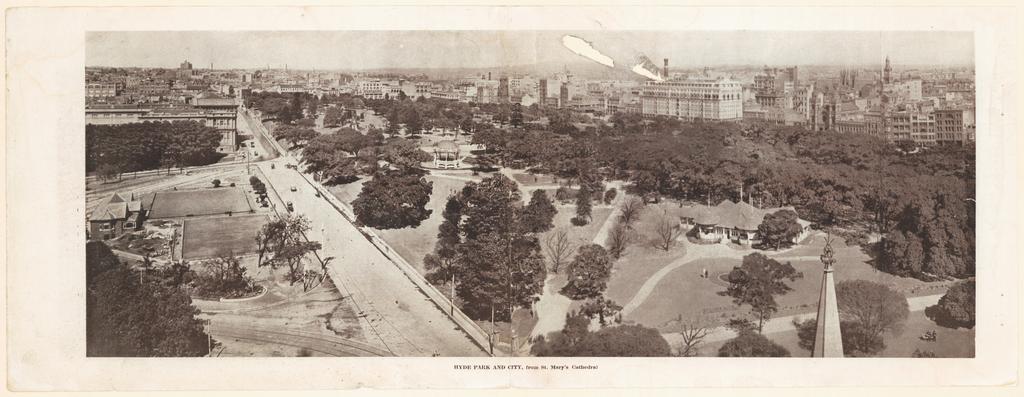 Keywords: archives newsouthwales blackandwhite state records nsw staterecordsnsw sydney city t&g tg hyde park hydepark outdoor monochrome black and white Title: Hyde Park and City, from St Mary's Cathedral Dated: c.1915 Digital ID: NRS20499_a050_000007 Series: NRS 20499 Most up-to-date Sydney panoramic views Rights: No known copyright restrictions www.records.nsw.gov.au/about-us/rights-and-permissions We'd love to hear from you if you use our photos/documents. Many other photos in our collection are available to view and browse on our website using Photo Investigator. Title: Hyde Park and City, from St Mary's Cathedral Dated: c.1915 Digital ID: NRS20499_a050_000007 Series: NRS 20499 Most up-to-date Sydney panoramic views Rights: No known copyright restrictions www.records.nsw.gov.au/about-us/rights-and-permissions We'd love to hear from you if you use our photos/documents. Many other photos in our collection are available to view and browse on our website using Photo Investigator. |