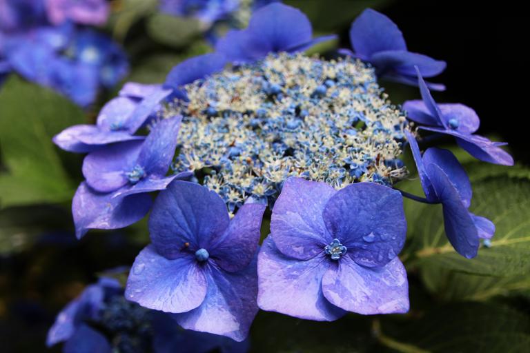 Keywords: hydrangea summer garden blue grove blossom bloom raindrop summer