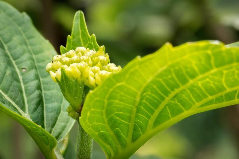 Keywords: hydrangea young blossom bloom frisch green macro leaves bud structure