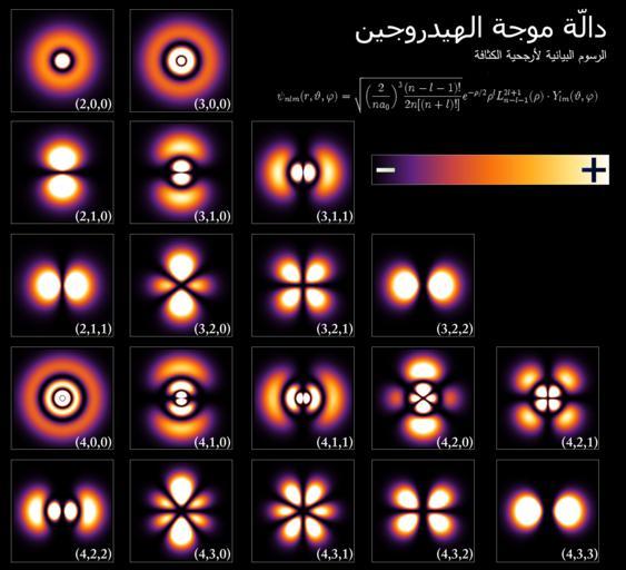 Keywords: Hydrogen Density Plots-ar.png مقطع عرضي لكثافة محتملة للمدارات الأولى من ذرة الهيدروجين ويحدد مستوى طاقة الإلكترون المتجه المدار الذي به، ويعكس اللون احتمالية العثور على الإلكترون في موقع محدد Hydrogen_Density_Plots png 50 2012-07-08 22 02 UTC Hydrogen_Density_Plots png PoorLeno talk derivative work Bassem translated to Arabic bassem Hydrogen_Density_Plots png PoorLeno Original upload log This image is a derivative work of the following images File Hydrogen_Density_Plots png licensed with PD-user-en PD-user-w 2009-02-03T10 09 58Z Ashik 2200x2000 1657885 Bytes <nowiki> Summary Hydrogen Density Plots for n up to 4 I created this work entirely by myself 17 August 2008 PoorLeno talk other_</nowiki> Uploaded with derivativeFX Atomic orbitals Hydrogen physics |