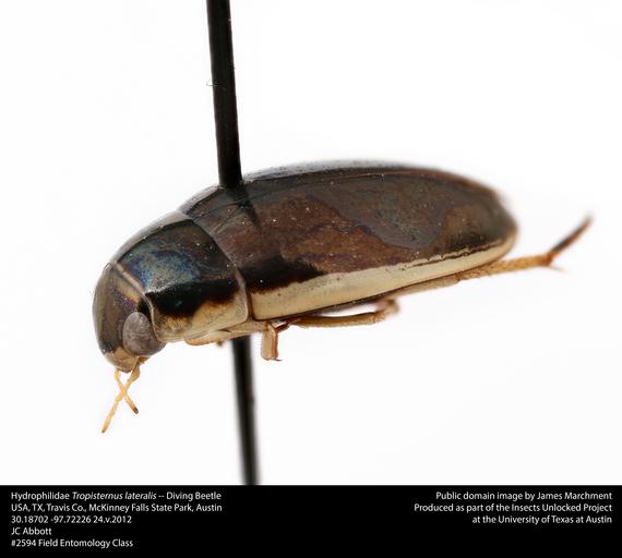 | Keywords: coleoptera hydrophilidae tropisternus aquatic insects aquaticinsects water beetle waterbeetle water scavenger beetle waterscavengerbeetle Hydrophilidae Tropisternus lateralis -- Diving Beetle USA, TX, Travis Co., McKinney Falls State Park, Austin 30.18702 -97.72226 24.v.2012 JC Abbott #2594 Field Entomology Class Hydrophilidae Tropisternus lateralis -- Diving Beetle USA, TX, Travis Co., McKinney Falls State Park, Austin 30.18702 -97.72226 24.v.2012 JC Abbott #2594 Field Entomology Class |