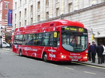 | Keywords: HyFLEETCUTE-HydrogenBus-London3.JPG First London bus WSH62991 reg LK60 HPE a 2010 single-deck fuel cell bus based on a VDL SB200 chassis and Wrightbus Pulsar 2 body Operating London Buses route RV1 it is pictured standing at the terminus in Covent Garden facing south Stop C in Catherine Street just off Aldwych It is part of the Transport for London / HyFLEET CUTE project own Spsmiler 2011-01-26 WSH class London buses on route RV1 Buses in the City of Westminster Buses in the United Kingdom photographed in January 2011 |