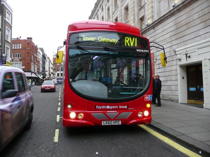 | Keywords: HyFLEETCUTE-HydrogenBus-London7.JPG First London bus WSH62991 reg LK60 HPE a 2010 single-deck fuel cell bus based on a VDL SB200 chassis and Wrightbus Pulsar 2 body Operating London Buses route RV1 it is pictured standing at the terminus in Covent Garden facing south Stop C in Catherine Street just off Aldwych It is part of the Transport for London / HyFLEET CUTE project own Spsmiler 2011-01-26 WSH class London buses on route RV1 Buses in the City of Westminster Buses in the United Kingdom photographed in January 2011 |