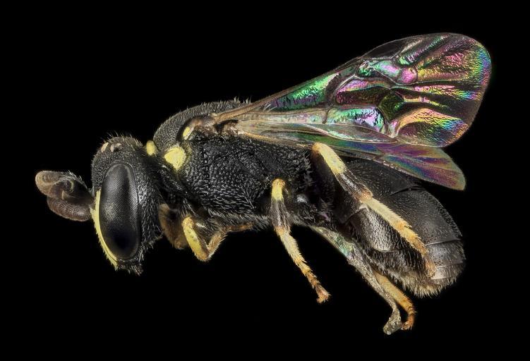 | Keywords: bug bugs bee bees pollinator pollinators animal animals animalia arthropod arthropods arthropoda insect insects insecta hymenoptera aculeata anthophila apoidea colletidae yellow-masked bee yellowmaskedbee yellow-masked bees yellowmaskedbees hylaeus hylaeus floridanus hylaeusfloridanus taxonomy:binomial=hylaeus floridanus taxonomy:binomial=hylaeusfloridanus usgsbiml black background surreal In rough translation this would be the "Florida Masked Bee." Tiny, grain of rice things, and usually mistaken for wasps as they carry their pollen internally rather than in their body hairs like other bees. Thus they have reverted to the wasp shape from whence bees came. This is a rare species collected by Heather Campbell as part of her survey of a sandhill area of North Carolina. Photo by Wayne Boo Canon Mark II 5D, Zerene Stacker, 65mm Canon MP-E 1-5X macro lens, Twin Macro Flash, F5.0, ISO 100, Shutter Speed 200, link to a .pdf of our set up is located in our profile In rough translation this would be the "Florida Masked Bee." Tiny, grain of rice things, and usually mistaken for wasps as they carry their pollen internally rather than in their body hairs like other bees. Thus they have reverted to the wasp shape from whence bees came. This is a rare species collected by Heather Campbell as part of her survey of a sandhill area of North Carolina. Photo by Wayne Boo Canon Mark II 5D, Zerene Stacker, 65mm Canon MP-E 1-5X macro lens, Twin Macro Flash, F5.0, ISO 100, Shutter Speed 200, link to a .pdf of our set up is located in our profile |
