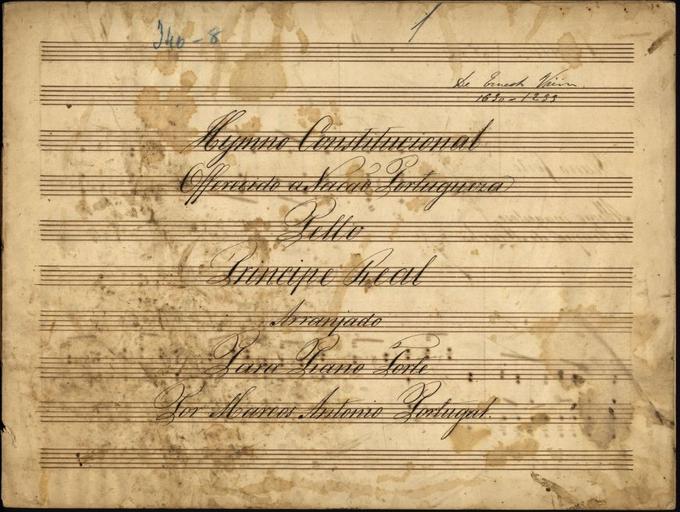Keywords: Hymno da Carta - capa.jpg pt Hymno Constitucional Entre 1820 e 1835 - Partitura 6 f ; 230x304 mm en Copy of the original sheet music of the old national anthem of Portugal Hymno da Carta http //purl pt/830 Biblioteca Nacional de Portugal Pedro IV de Portugal 1826 Institution Institution Biblioteca Nacional de Portugal PD-old Sheet music from Portugal O Hino da Carta Music in the BNP |