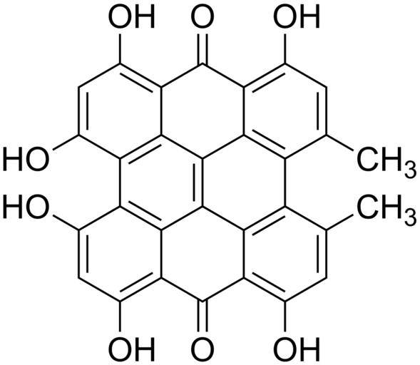 Keywords: Hypericin 200.svg validSVG Structure of 1 3 4 6 8 13-hexahydroxy-10 11-dimethylphenanthro1 10 9 8-opqraperylene-7 14-dione Own 2014-04-23 Emeldir <span class signature-talk >talk</span> Chemical structure verified https //upload wikimedia org/wikipedia/commons/0/02/Hypericin_200 svg 1S/C30H16O8/c1-7-3-9 31 19-23-15 7 16-8 2 4-10 32 20-24 16 28-26-18 12 34 6-14 36 22 26 30 20 38 17-11 33 5-13 35 21 29 19 37 25 17 27 23 28/h3-6 31-36H 1-2H3 BTXNYTINYBABQR-UHFFFAOYSA-N 548-04-9 Synonyms <small>1 3 4 6 8 13-Hexahydroxy-10 11-di-methylphenanthro 1 10 9 8 opqra perylene-7 14-dione 4 4' 5 5' 7 7'-Hexahydroxy-2 2'-dimethylnaphthodianthrone 4 5 7 4' 5' 7'-Hexahydroxy-2 2'-dimethylnaphthodianthrone Cyclo-Werrol Cyclosan Hiperikum Hipérico Hyperici Herba Hypericin Hypericin native Hypericin diagnostic and therapeutic - Sanochemia Hypericum Hypericum red Johannesört Johanniskraut Jonažoliu žole Millepertuis Mäkikuisma Orbáncfu PVP hypericin St John's Wort Trezalková nat VIMRxyn Vimrxyn Ziele dziurawca</small> PD-chem Hypericin |