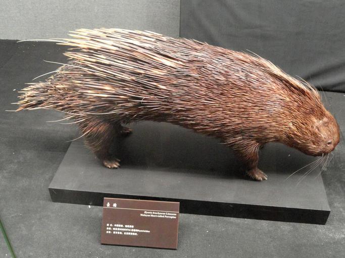 Keywords: Hystrix brachyura - Kunming Natural History Museum of Zoology - DSC02466.JPG Taxidermy exhibit in the Kunming Natural History Museum of Zoology 昆明动物博物馆 Kunming Yunnan China I took this photograph 2011-08-10 02 57 28 Daderot Public domain Taxidermy in the Kunming Natural History Museum of Zoology Hystrix brachyura |