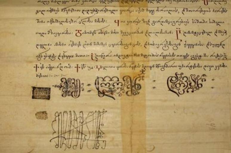 Keywords: სოლომონ I-ის სიგელი, 1772 წელი.jpg en Royal charter of King Solomon I of Imereti 1772 ქუთაისის ისტ რიული მუზეუმი ქუთაისის ისტ რიული მუზეუმი Solomon I of Imereti signature svg 50 Custom license marker 2014 09 18 PD-Art-100 Uploaded with UploadWizard Solomon I of Imereti Mkhedruli royal charters |