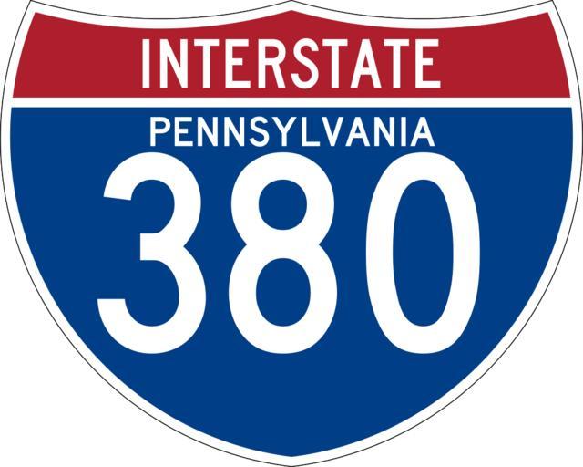 Keywords: I-380 (PA).svg 750 mm by 600 mm 30 in by 24 in Interstate shield made to the specifications of the http //mutcd fhwa dot gov/SHSm/Guide pdf 2004 edition of Standard Highway Signs sign M1-1 Uses the http //www triskele com/fonts/index html Roadgeek 2005 fonts United States law does not permit the copyrighting of typeface designs and the fonts are meant to be copies of a U S Government-produced work anyway Colors are from http //mutcd fhwa dot gov/kno-colorspec htm Pantone Red 187 and Blue 294 converted to RGB by http //www reeddesign co uk/test/pantone2rgb html The outside border has a width of 1 1 mm and a color of black so it shows up; in reality signs have no outside border own Ltljltlj User Ltljltlj/Template Three-digit Interstate Highway shields with name of state 80-3 Pennsylvania |