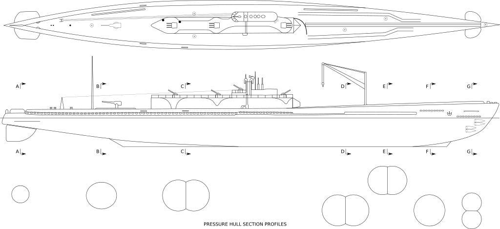 Keywords: I-400 class deck compartment plan.svg en Deck plan and profile for the Japanese i-400 class submarine Included with sections of the pressure hull own Lakkasuo 2010-10-02 Vectorised from US Navy sources that are in the public domain I-400 class submarine General arrangements |
