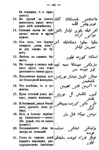 | Keywords: I Azerbaijani proverbs 44.jpg en Page with Azerbaijani proverbs written by S Zelinski in Erivan Сбо ник мате иалов для описания местностей и племен Кавказа Выпуск пе вый Отдел II Ст 44 Azerbaijani proverbs written by S Zelinski 1881 PD-old Azerbaijani proverbs Azerbaijani manuscripts |