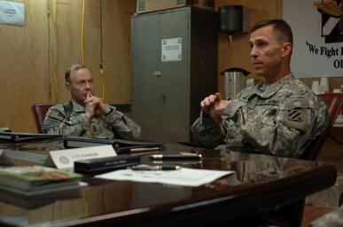 Keywords: I Corps commander visits 3rd CAB DVIDS84724.jpg en Col Dan Ball right commander of 3rd Combat Aviation Brigade 3rd Infantry Division briefs Lt Gen Charles H Jacoby Jr commander of I Corps on the capabilities and structure of the 3rd CAB April 17 at Camp Striker Baghdad 2008-04-17 Sgt 1st Class Thomas Mills https //www dvidshub net/image/84724 84724 2008-04-18 16 05 CAMP STRIKER IQ PD-USGov Charles H Jacoby Jr 3rd Infantry Division United States Camp Striker Images from DoD uploaded by Fæ |