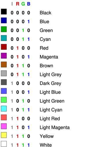 Keywords: IBM16 Palette-en.svg en This is a 48-bit PNG image describing the MC6845 video controller's palette used in the IBM PC's CGA text mode and EGA two graphics modes The colours used for the palette squares are precise 16-bit values of the MC6845's range 0 2<sup>n</sup>-1 3 2<sup>n</sup>-1 3ยท2 2<sup>n</sup>-1 effectively 0000 5555 AAAA and FFFF own XFig source file at http //roker dingens org/wikipedia/IBM16_Palette-en fig RokerHRO 2009-11-27 Inspired by File IBM16Palette-48bit png Computer graphic color codes Color palettes Colors SVG colors |
